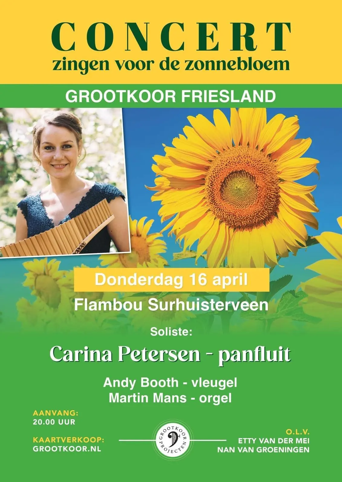 Op donderdag 16 april geeft het Grootkoor Friesland een concert in de Flambou! De soliste deze avond is Carina Petersen.